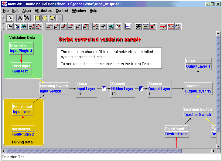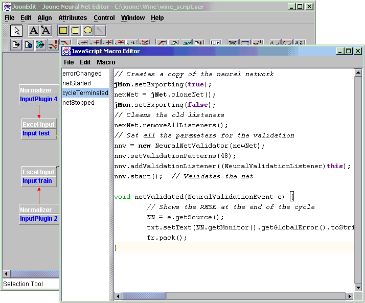 The GUI editor is a graphical user interface to visually create, modify and train a neural net. It's based on a graphical framework called JHotDraw , an other SourceForge project (Thanks to the authors of that package).